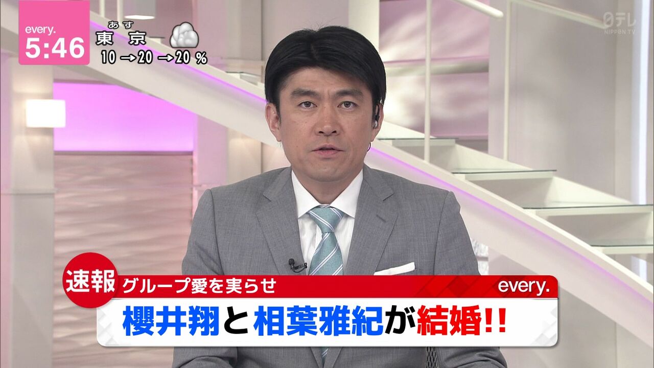 私事で恐縮ではございますが、この度、相葉雅紀は結婚させて頂くことになりました。