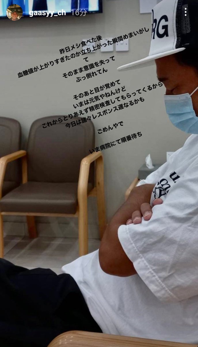 昨日メシ食べた後、血糖値が上がりすぎたのか立ち上がった瞬間めまいがして、そのまま意識を失って、ぶっ倒れてん