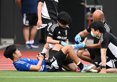 7対7のミニゲーム中、久保はMF堂安律(23=PSV)と競り合う中で、堂安のスパイクが久保の左足首を踏む形となってしまった。久保は練習を途中で切り上げた。負傷の状態については不明。