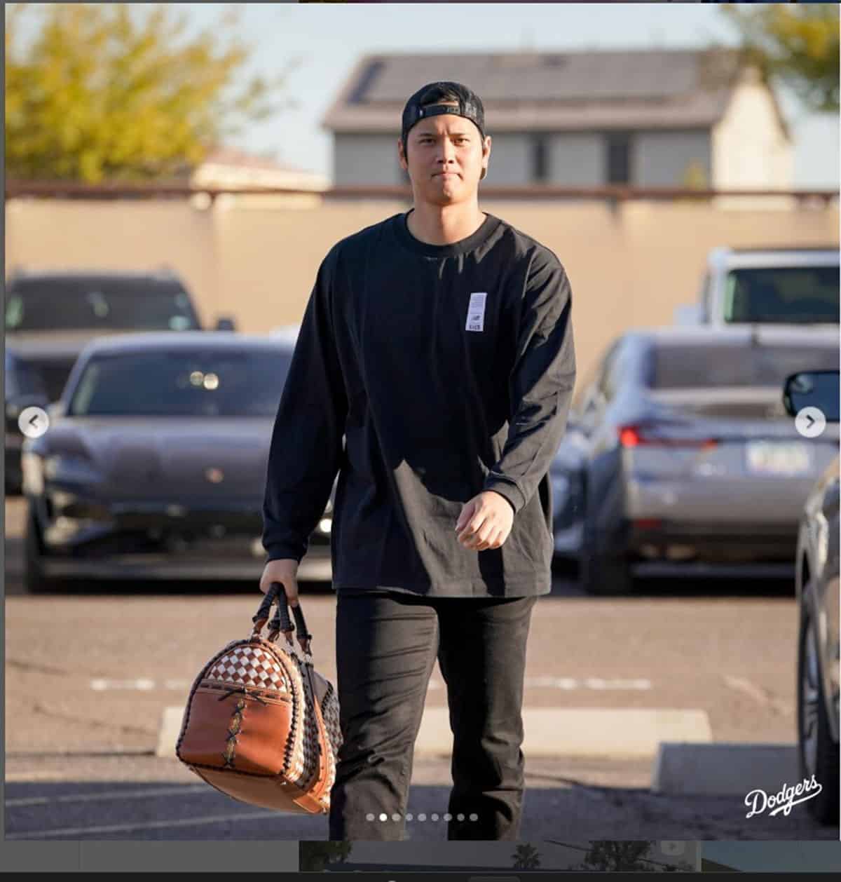 2月11日、ド軍は公式Instagramで大谷が球場入りする様子を投稿したが、その際、手にしていたバッグが大注目となった。