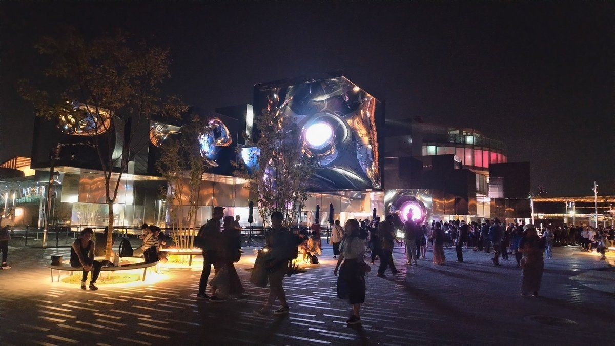 多くの滞留者が出た夜間の会場内では、飲食物を配ったり、スペースを開放したりするパビリオンや施設も目立った。