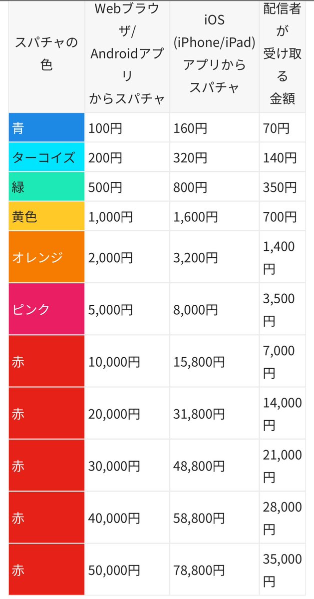 ・アップル端末からのスパチャだとアップル税が別に2割