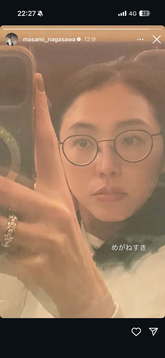 「長澤は11月25日までに更新したインスタグラムのストーリーズで、丸ぶちのメガネをかけたレアな顔で、左手にスマホを持って自撮りしている姿の写真を投稿。“めがねすき”とだけつづったのですが、よく見ると左手の薬指に高級ブランドの指輪をバッチリつけていた。ネット上では“男がいるにおわせだ!”などと騒然となったのです」(スポーツ紙記者)